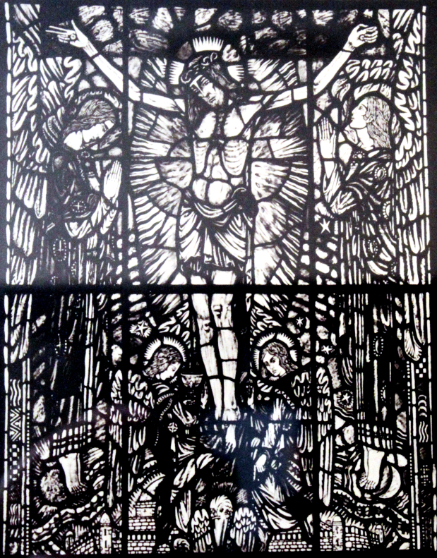Apse WindowShown above is a video of the stained glass window in the apse of St Andrew’s church. Shown below is a photograph of the same stained glass window. If you click on any area of the stained glass in the photograph below, that part of the window will be displayed in greater detail. Reproduced at the bottom of this page is David Reid’s full description of this stained glass window, as based on the notes produced by the designer of the window Walter J. R. Cook. On Sunday the 18th Nov. 1934 His Royal Highness The Duke of York unveiled the stained-glass window in the apse. This window is Scotland’s tribute to the memory of Field-Marshal The Earl Haig. It was designed and executed by Mr. Walter J. R. Cook, Edinburgh. The Subject of this Window is that of the Supreme Sacrifice of our Soldiers as symbolised by the Crucifixion of Christ which occupies the centre part of the Window. On either side of His Cross hover adoring angels with the sun and the moon at their feet symbolising the light and the darkness which descended on the earth. Behind all, the rainbow of Hope is seen, Above the Christ descends the Holy Spirit in the form of a dove. Behind flow the Waters of Life. On either side a small angel holds the Martyr’s Crown and the Crown of Thorns. At the feet of Christ two angels are seen holding the symbols of the Communion, the Bread and Wine. In the sky which has opened appears the vision of the Holy City. At the Base of the Cross the Mother mourns her Son, while a second woman prays and a Disciple, setting out to carry on the work of Christ, endeavours to comfort both. This group represents the Country mourning her dead but preparing to carry through the cause for which the men died that their death should not he in vain. Above these figures is the symbol of Woman’s sacrifice, the Pelican feeding her young with her own blood. At the base of the Window, surrounded by the names of his most famous Battles, are the Arms of Earl Haig with Crown, Helm, Crest and Supporters. Underneath is the Order of the Thistle, Springing from behind the Scroll of Battle Names is the Tree of Life, which encircles in the centre of the Window a mourning Scottish Soldier kneeling on the Poppy-covered Grave of a comrade. Outside is represented the Scottish Thistle and the Flanders Poppy. On the left, encircled by the foliage of the Tree of Life and surmounted by the Lion of Scotland, are four quatrefoils depicting from the base up (I) The Engineers repairing a bridge over a river; (2) The Infantry preparing to charge the Enemy Lines; (3) The War as fought in the Air; (4) The British Tanks advancing across No Man’s Land, on a shattered German Trench. On the right, in the same order and surmounted by a Shield bearing the Cross of Saint Andrew, we have (1) The Medical Staff represented by a Base Hospital; (2) A Cavalry Skirmish; (3) The men who manned the Troopships on the Channel during the Submarine peril. The Bridge of a Commandeered Tramp Steamer is seen; (4) The Artillery, a camouflaged Big Gun in action. ![]() Shown above is a photograph of part of the original plan of the stained glass window as drawn by Walter Cook. Next: the Window above the Main Door |